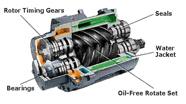 Some oil-free compressors use a special coating, which is applied to the rotor’s elements eliminating the need for lubricants.
